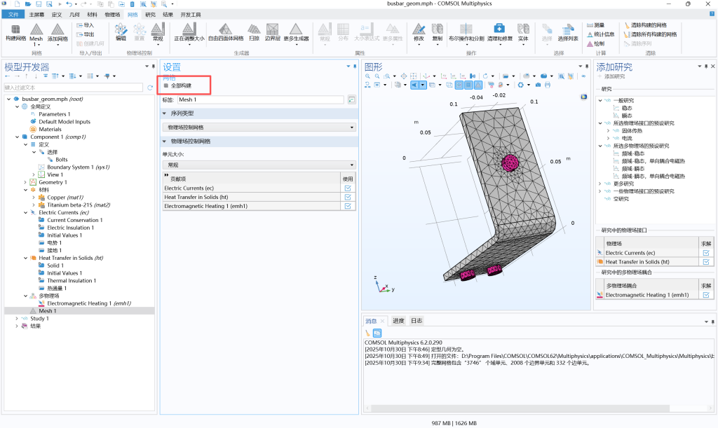 S10:构建网格,使用默认物理场构建网格,点击全部构建